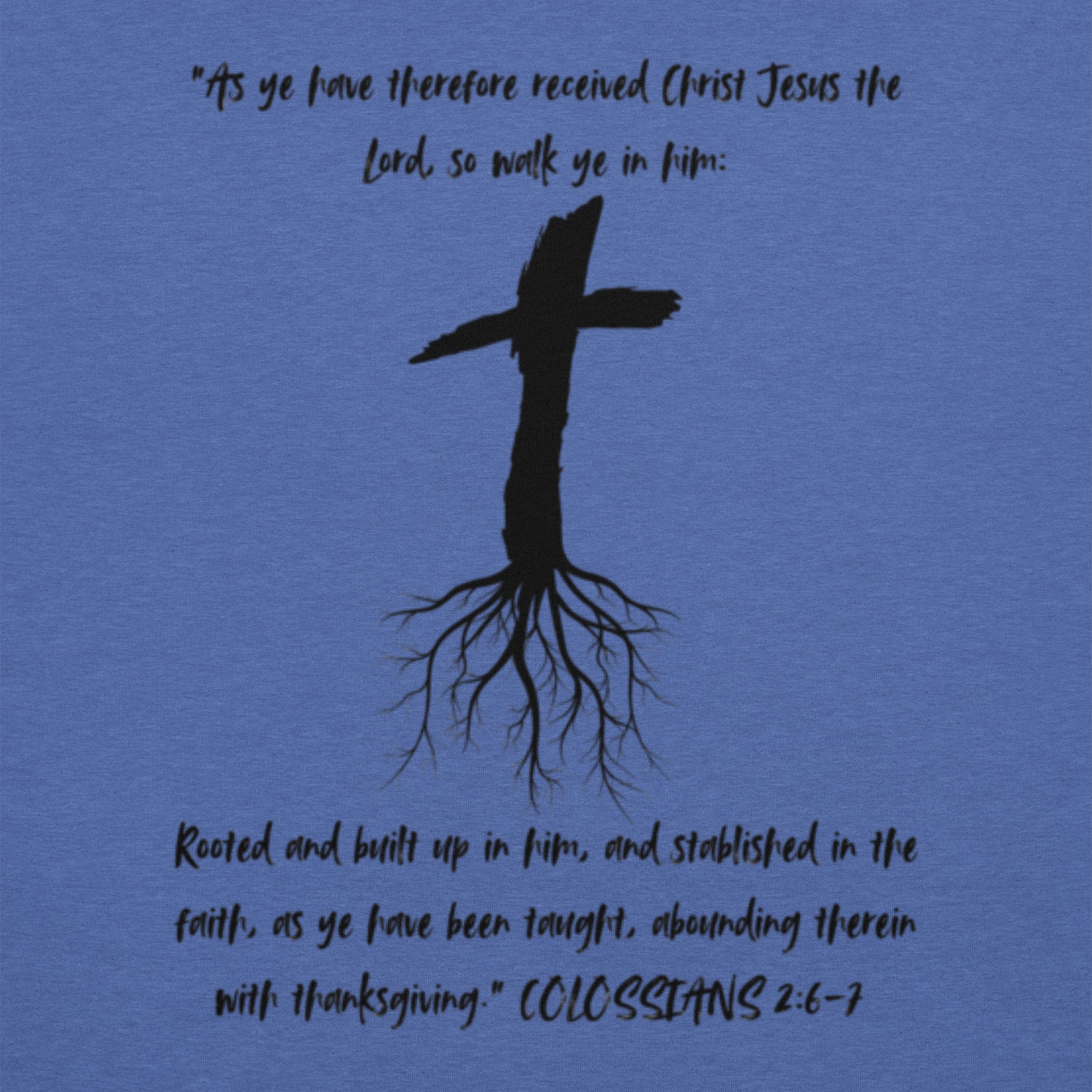 Rooted Christian T-shirt with Colossians 2:6-7 Scripture